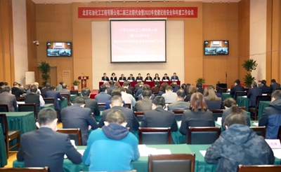 2月14日,北京石油化工工程有限公司召開二屆三次職代會暨2022年黨建紀檢安全和年度工作會。大會學習貫徹了集團公司一屆三次職代會暨2022年黨建紀檢和年度工作會會議精神,全面總結了公司2021年各項工作,分析了公司當前所面臨的發展形勢,明確了2022年工作的總體思路、主要目標和重點任務。公司領導班子成員、中層干部、職工代表等170余人參加了會議,西安分公司、榆神乙醇項目、內蒙古BDO項目等設視頻分會場。