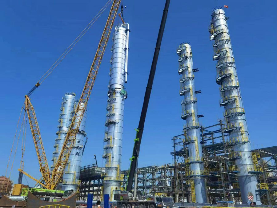 期間,項目還陸續完成二甲醚塔器、羰基化及產品分離繞管換熱器等大件設備吊裝,精準規劃吊車轉場,提高吊車使用效率。
